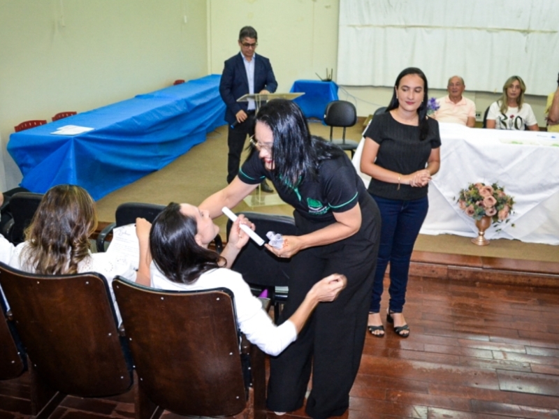 A noite desta terça-feira, dia 25, foi marcada por muitos momentos especiais, durante a cerimônia de formatura dos alunos dos cursos técnicos do Instituto Federal do Paraná – Polo Andirá. No total, 18 alunos receberam os diplomas de Técnico em Meio Ambiente, Técnico em Agente Comunitário de Saúde e Técnico em Logística. Entre os destaques emocionantes, um momento coletivo de abertura das cartas escritas por cada um deles no início da trajetória. Uma espécie de cápsula do tempo, com narrativas de esperança que encantaram o público presente. Este momento foi conduzido pela professora tutora Flávia Aparecida de Moraes, que narrou, durante a sua apresentação, os desafios e emoções durante os trajetos dos cursos.