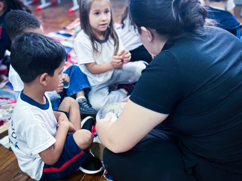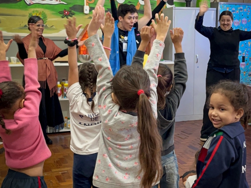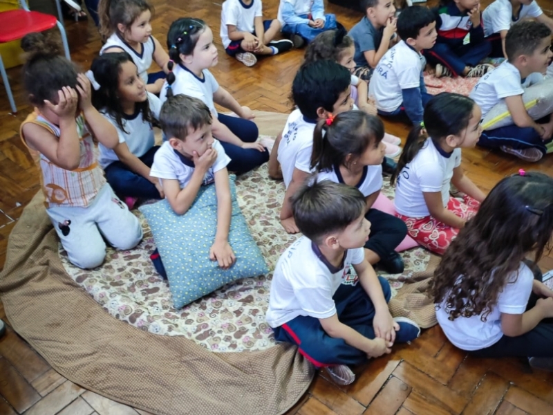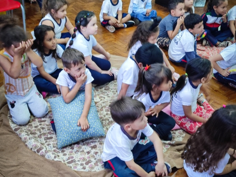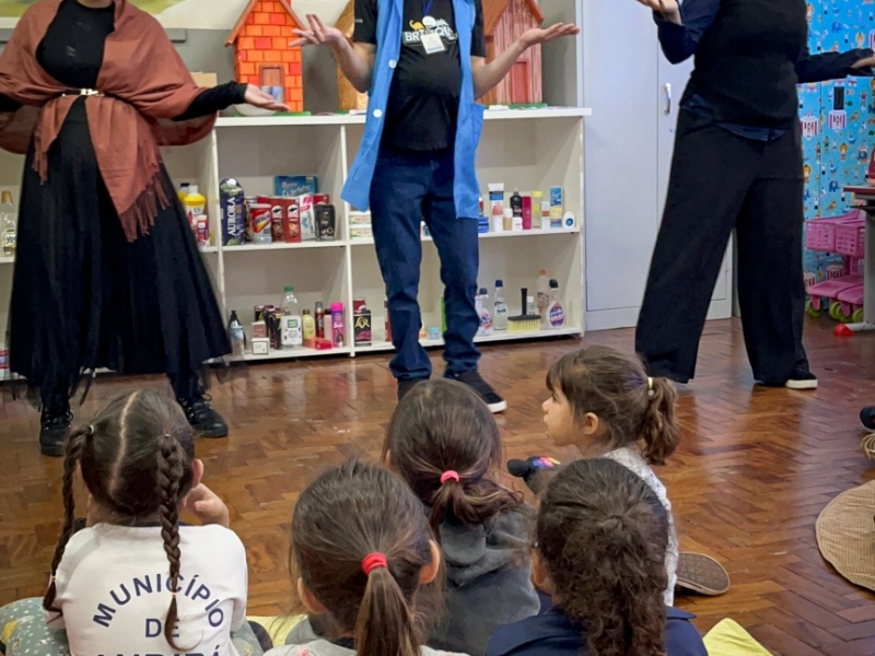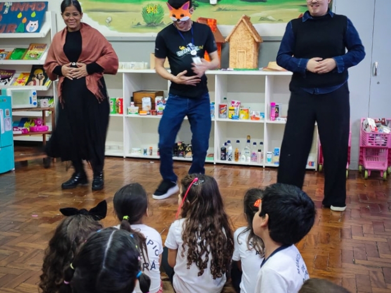 Nesta edição, o projeto teve como temática a narrativa do livro “O Caso do Bolinho”, da escritora Tatiana Belink. Após a contação da história, os alunos acompanharam uma encenação divertida e uma mediação literária interativa, despertando o interesse das crianças pela leitura e pelo universo das histórias.
