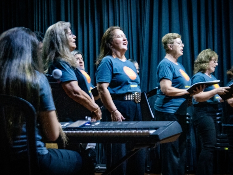 Durante a apresentação, os alunos da APAE se uniram à turma de Canto Coletivo Adulto, emocionando o público. Ao final, alguns estudantes compartilharam suas experiências, e a pedagoga da APAE destacou a importância do Musicou no desenvolvimento dos atendidos, além de agradecer o acolhimento e o trabalho realizado.